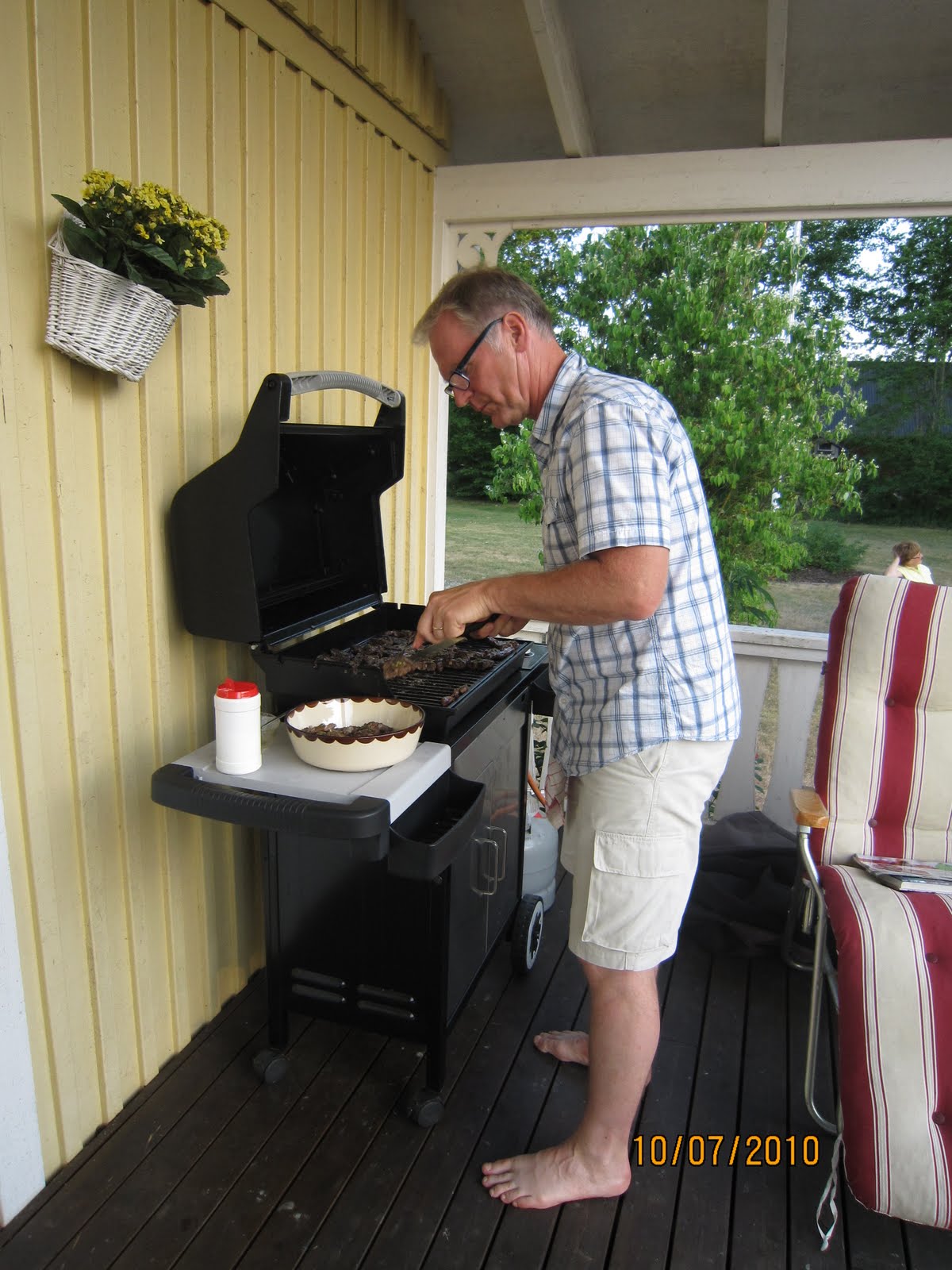 En vanlig dag. Nicklas pappa grillar.